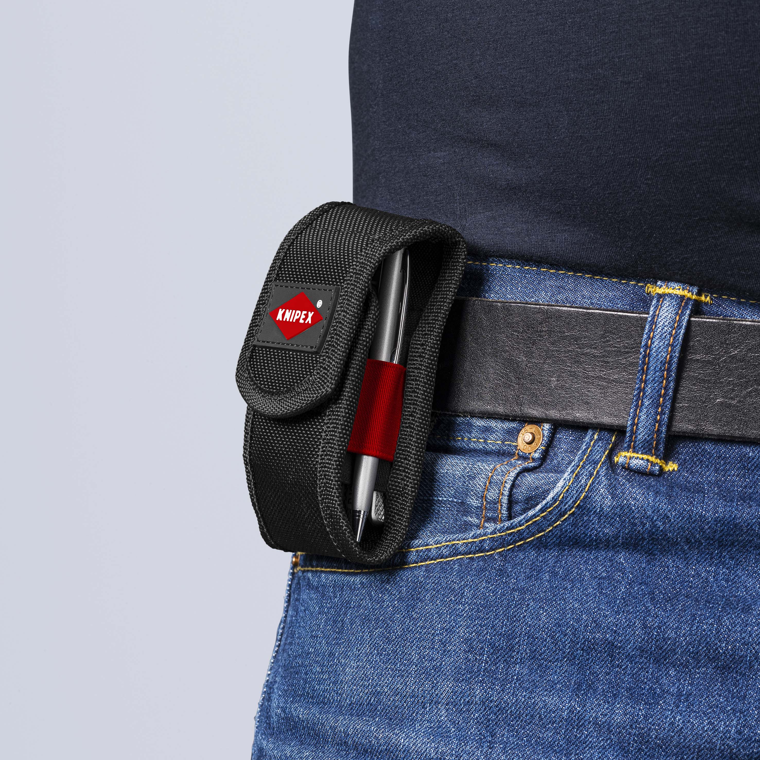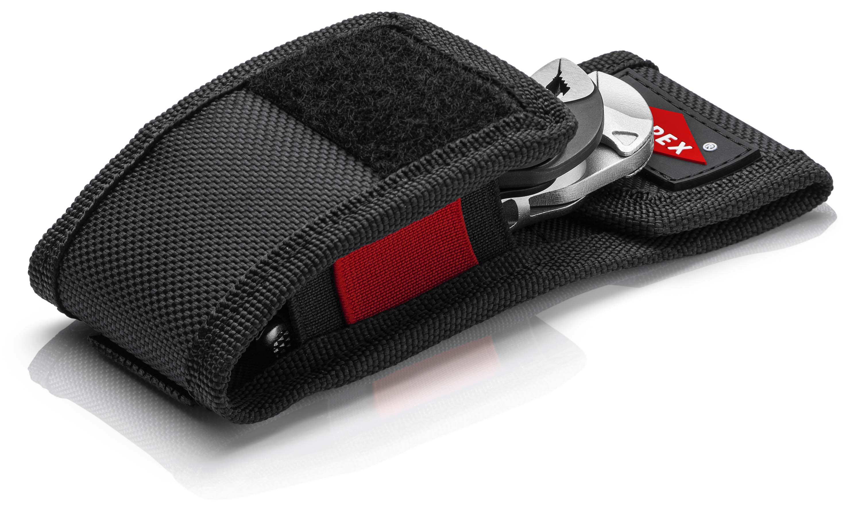 Mini-tangenset XS in riemtas Altijd bij de hand, altijd behulpzaam: Sleuteltang XS en KNIPEX Cobra® XS in praktische riemtas. Gereedschapstas uit Krachtig polyesterweefsel, met klittenband en riemlus. Met sleuteltang XS: 100 mm gereedschapslengte; de parallelle opening van de bek grijpt voorzichtig tot sleutelmaat 21 mm. Met KNIPEX Cobra® XS: 100 mm gereedschapslengte, grijpt ronde werkstukken tot 28 mm, met zelfklemmende werking. Afmetingen (B x H x D): 30 x 110 x 45 mm. - Afmeting breedte buiten (binnen): 30mm - Afmeting hoogte buiten (binnen): 110mm - Afmeting diepte buiten (binnen): 45mm Leveromvang: 1 x 87 00 100 KNIPEX Cobra® XS Waterpomptang, 1 x 86 04 100 KNIPEX Sleuteltang XS tang en schroefsleutel in één gereedschap,.