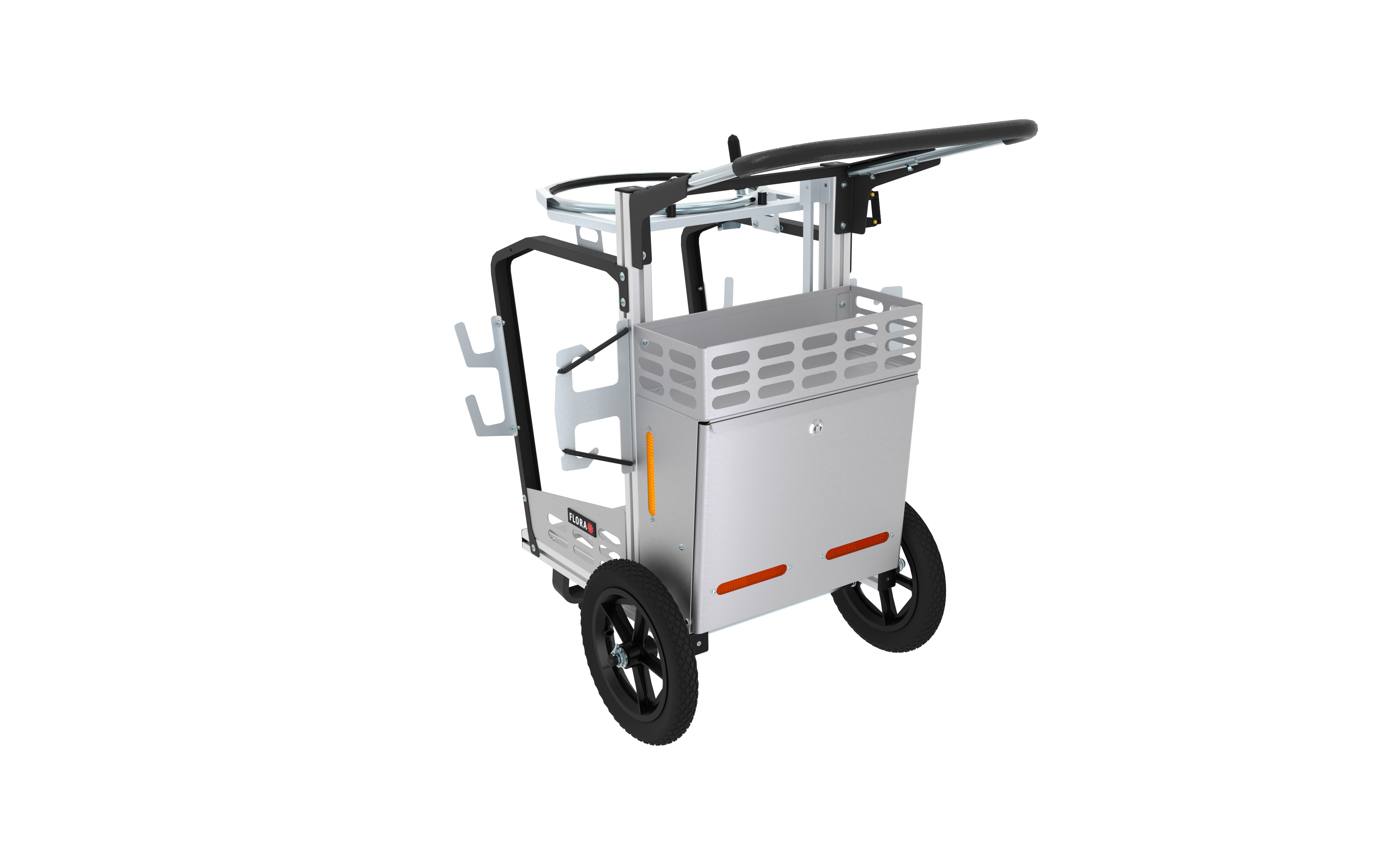 Universele trolley voor onderhouds werk buiten op alle terreinen. Mooi design voor gebruik in publieke ruimtes. Gemaakt van Aluminium en gepoedercoat frame gemaakt van gegalvaniseerd staal, lek vrije plastic wielen, bevat een houder voor een zwerfvuilgrijper en 4 andere gereedschappen. Afsluitbare opbergkist met reflectoren. De wagen is al in elkaar gezet.