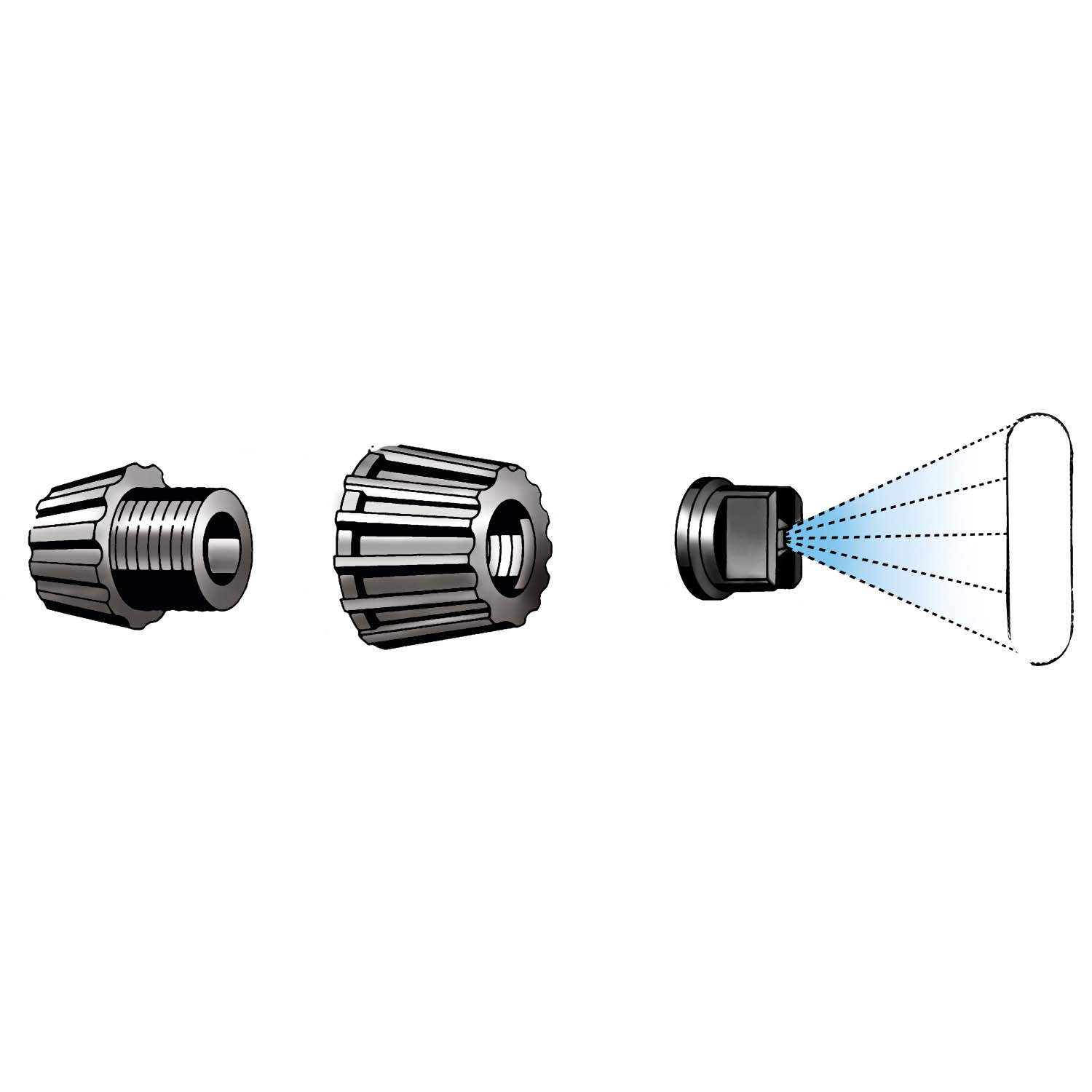 Voor bijzonder agressieve reinigings middelen, vlakstraalkop zuurbestendig.