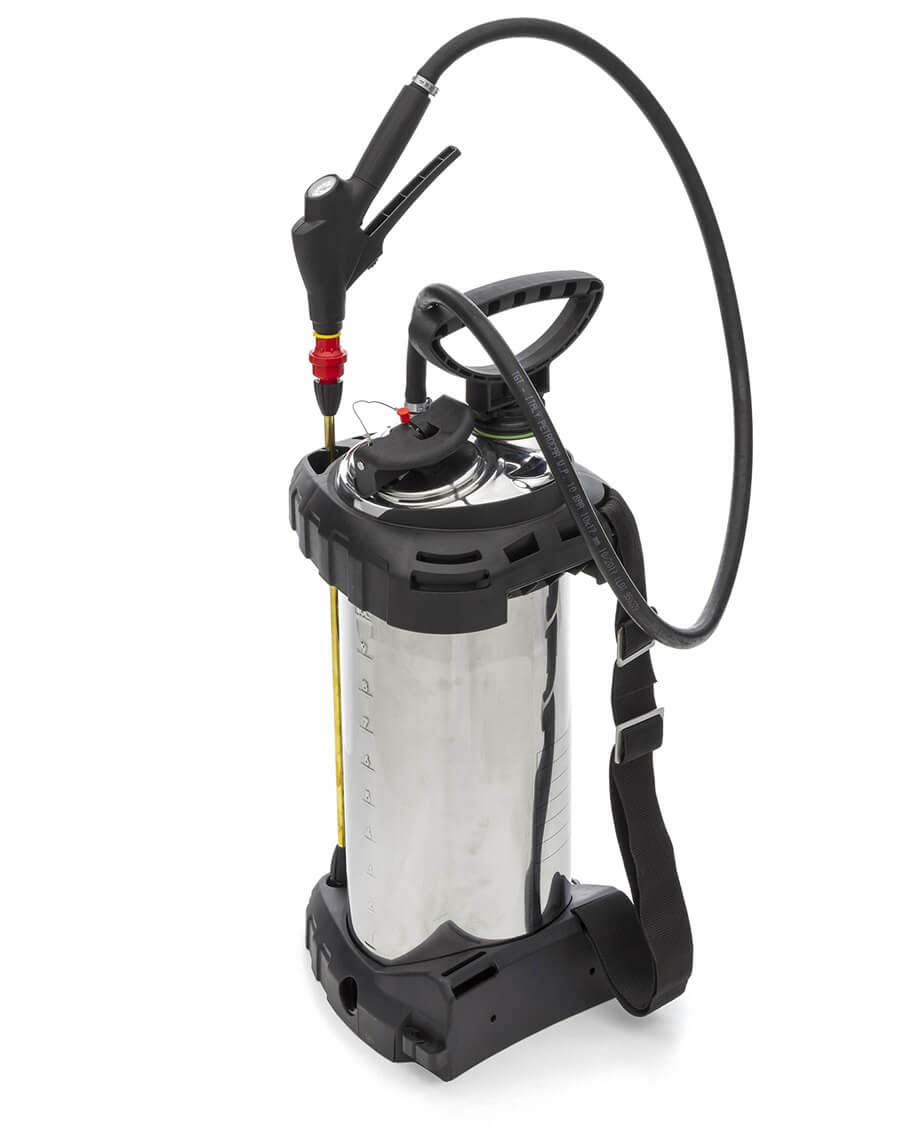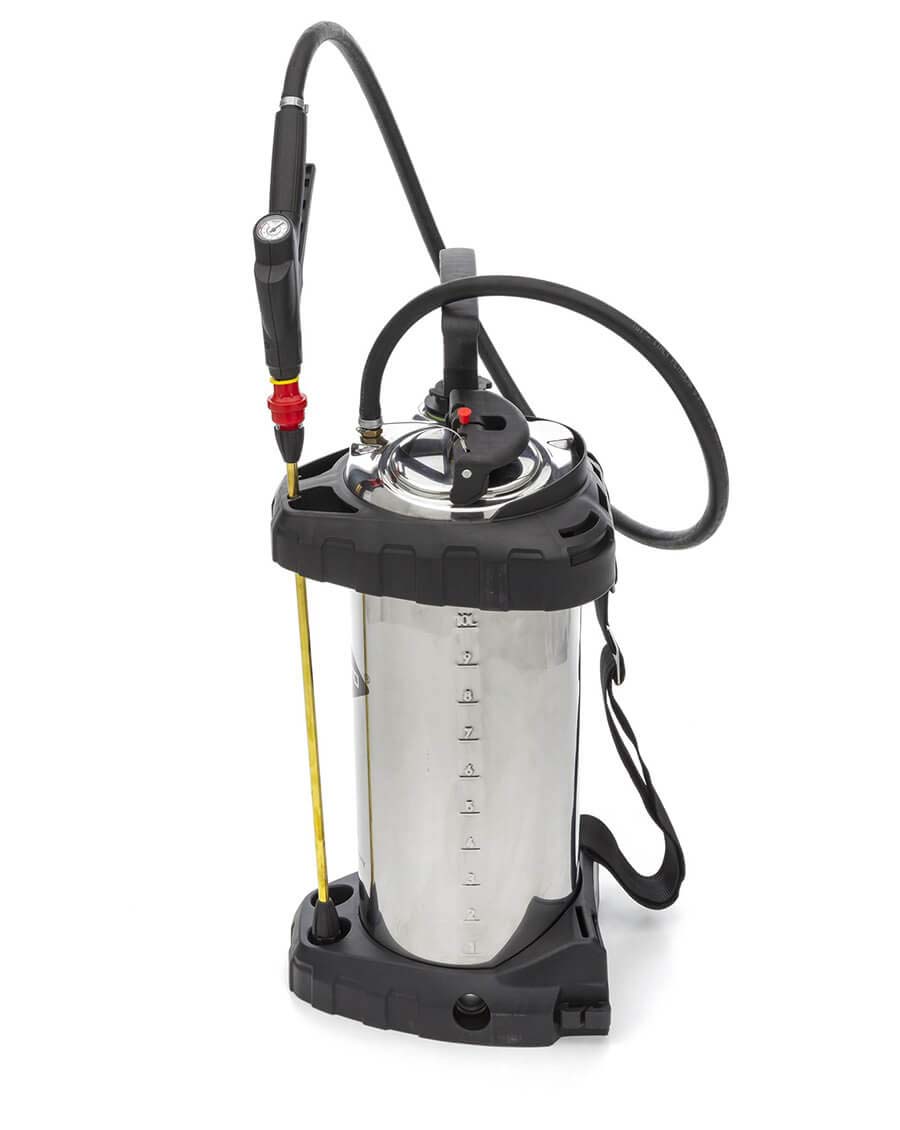 10 liter, met aparte extra grote vulopening, overdrukventiel (1,5 bar), olie- en koudebestendige flexibele slang, afsluitventiel met filter en manometer, FPM afdichtingen.