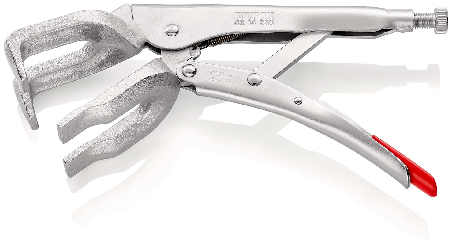 Las-klemtang voor het klemmen, vastspannen en vasthouden van verschillende profielen. Zeer belastbaar. Met stelschroef en ontgrendelingshendel. éénhandbediening. Grote spankracht door kniehefboomoverbrenging. grijpbekken uit hittebestendig gietijzer. klemt naast elkaar liggend profiel- en vlak materiaal tijdens het lassen. ook voor profielen met randen tot 25 mm hoogte. - Spanwijdte rond: 30 – 65 mm - Spanwijdte 4-kant: 50 mm.