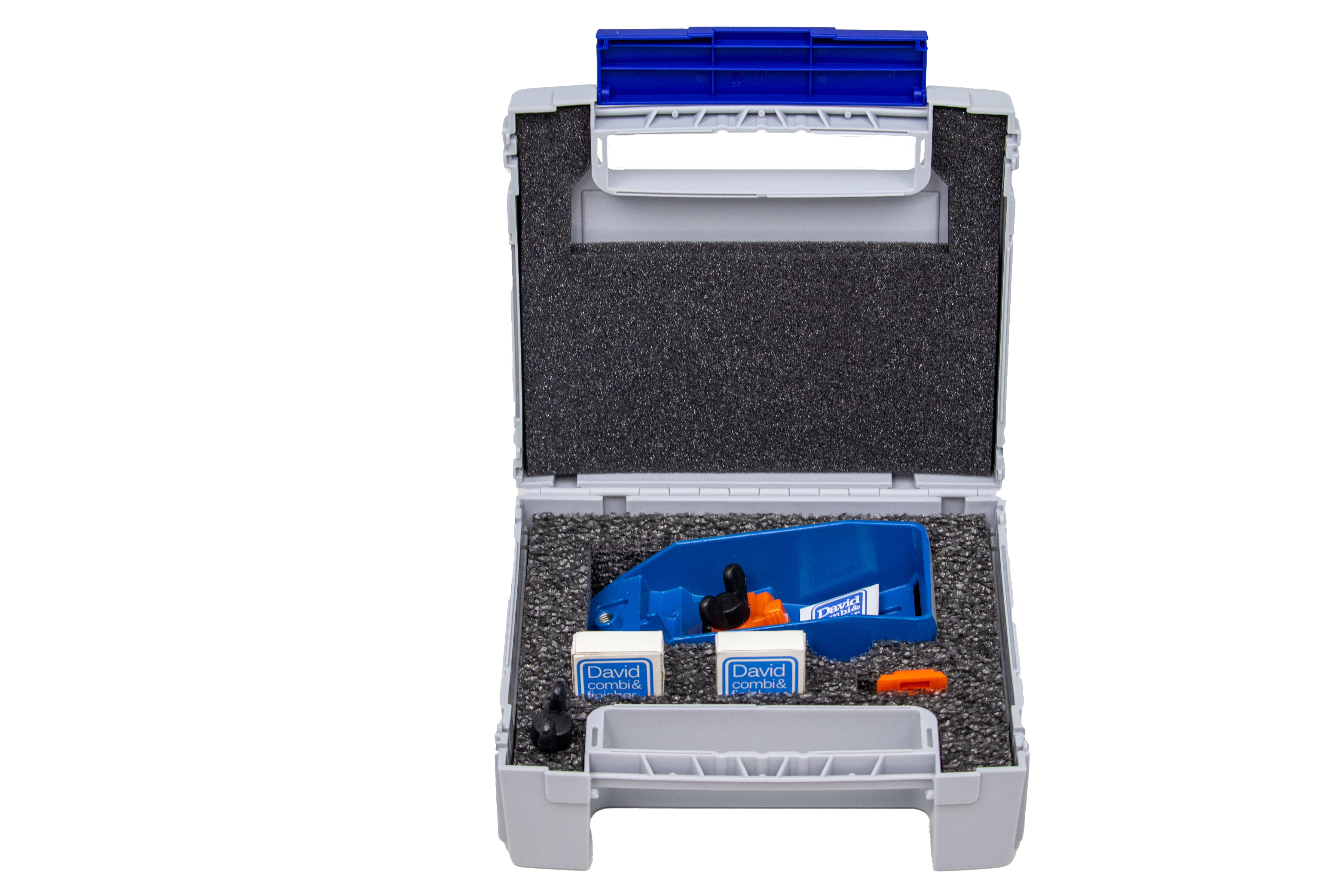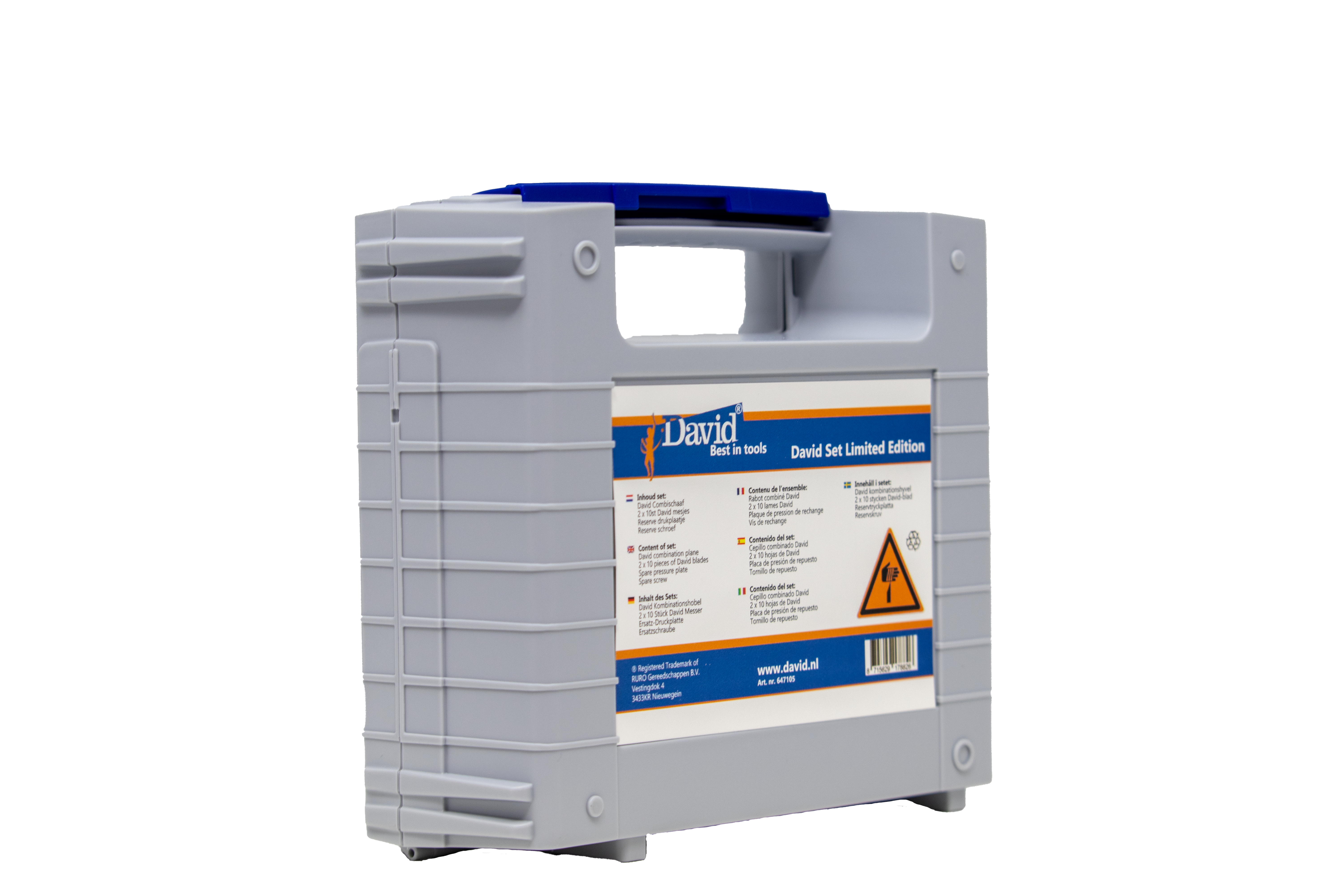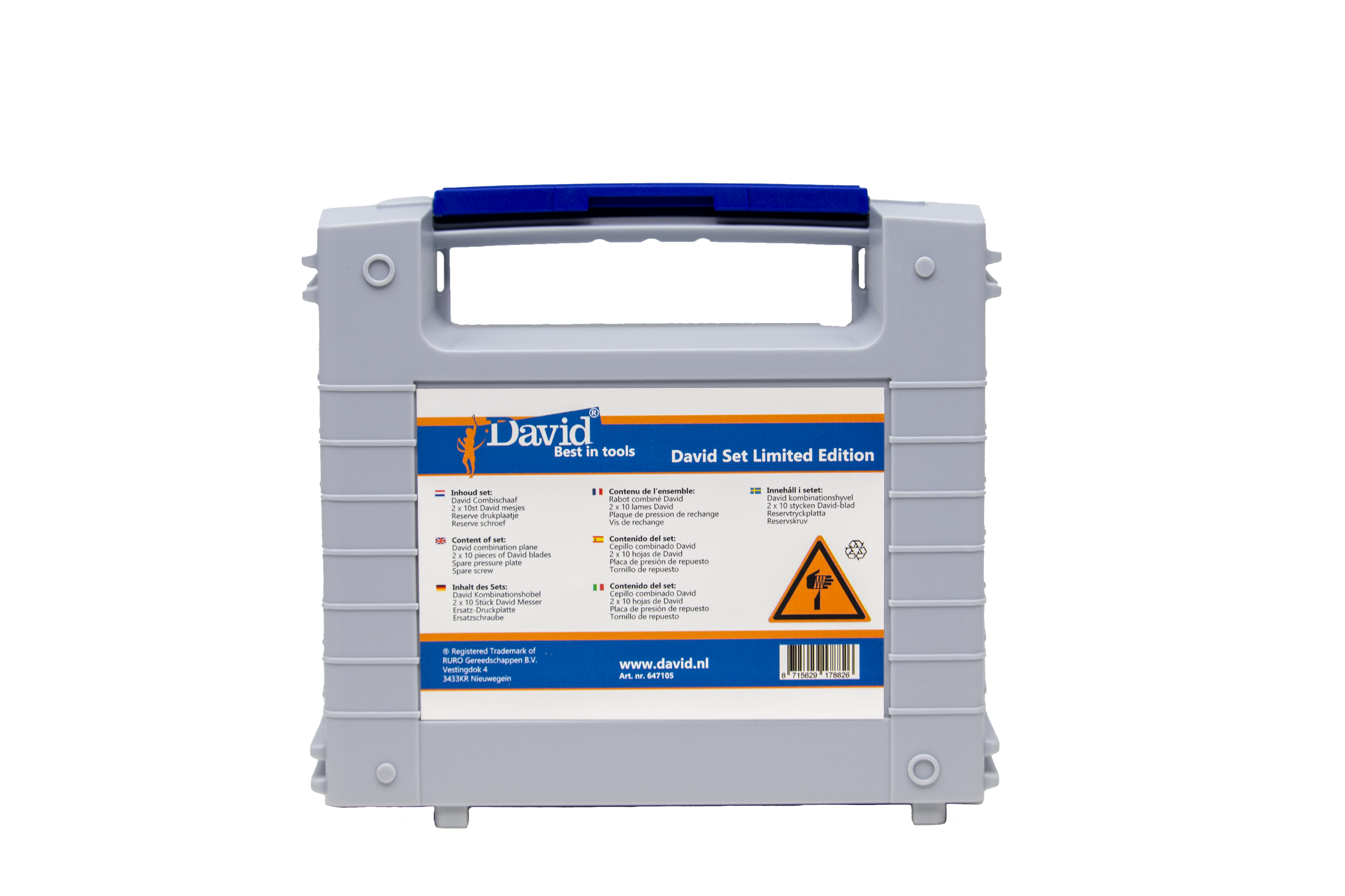De DAVID combi schaaf set LIMITED Edition is een complete, hoogwaardige set die elke vakman en hobbyist zal waarderen. Deze set wordt geleverd in een stevige koffer met twee sets van 10 reservemesjes, een montageschroef en een reserve drukplaatje, zodat u altijd bent voorbereid op elk project. De DAVID combi schaaf zelf heeft een tweezijdig snijdend beitelmesje, waarmee u nauwkeurig kunt schaven, krabben, steken en snijden. Dit veelzijdige gereedschap is geschikt voor het bewerken van uiteenlopende materialen, zoals hout, kunststof, leer, board en rubber.