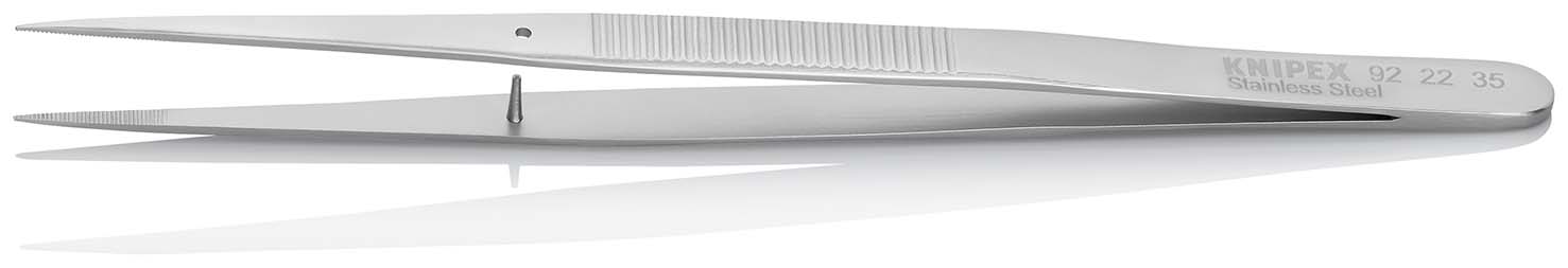 Universele pincet Universele pincetten zijn geschikt voor zowel veeleisende standaardtoepassingen als precisiewerk. Groot aantal modellen: recht, schuin, met gladde of gekartelde grijpvlakken en handgrepen, met naaldpunten, spitse of stompe punten en in verschillende lengtes. voor de elektronicabranche, horlogefabrikanten en juweliers. Hoogwaardig roestvrij staal: hoge duurzaamheid en zeer goede corrosiebestendigheid tegen verschillende atmosferische omgevingen en veel bijtende materialen. - Oppervlak: gematteerd - uitvoering: rechte - Puntbreedte (A): 0,5 mm - Puntbreedte (B): 0,5 mm - Corrosiebestendig: ja - Weerstand tegen zuren: zeer goed - ESD-getest: nee - VDE-gekeurd: nee - Branches: Industrie Elektronika - Magnetisch: niet-magnetiseerbaar (80%).