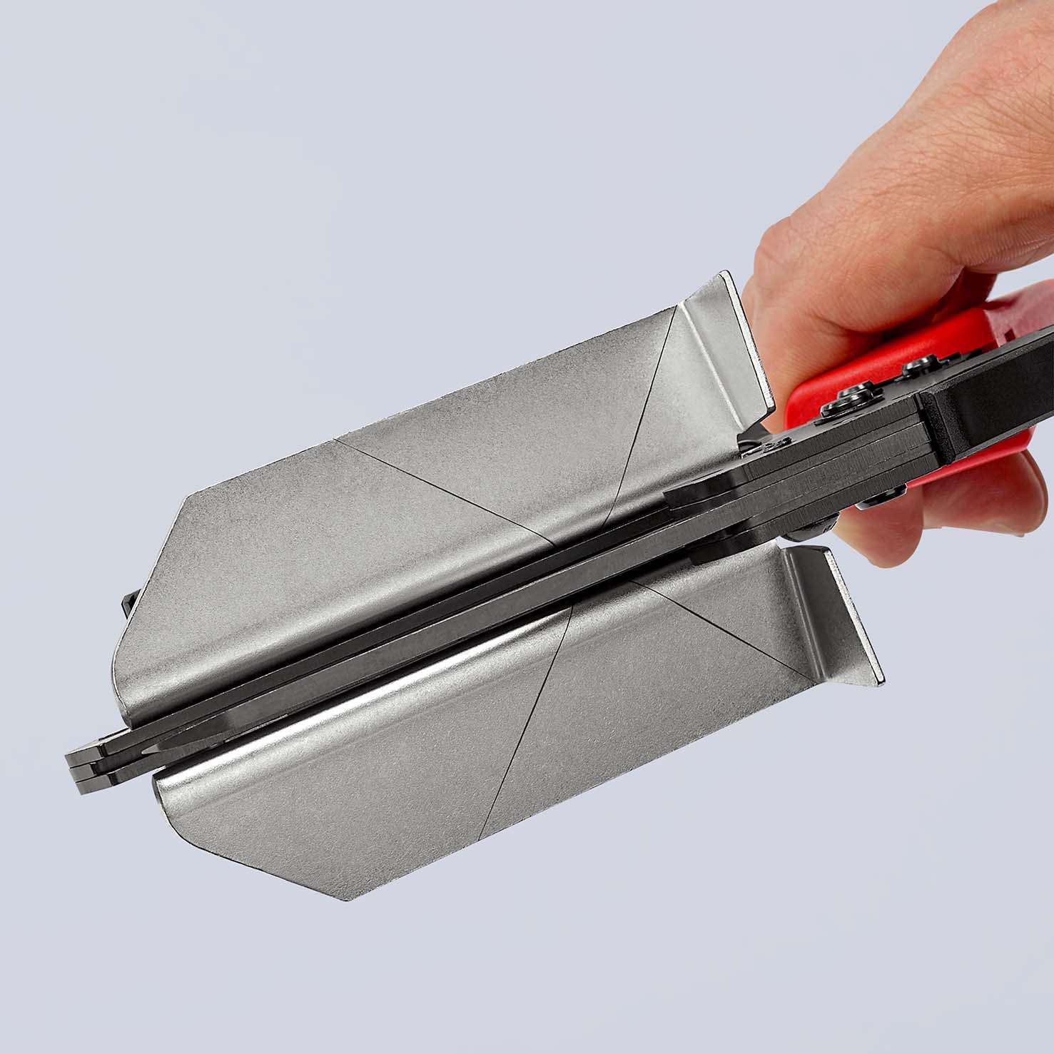 Schaar voor kunststof voor het snijden en verkorten van kabelkanalen, ook voor kunststof. Speciale kniehefboomoverbrenging. Zeer effectieve snijgeometrie. - Snijcapaciteit: max. 4,0 - Meslengte: 110 mm.