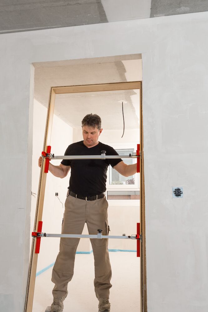 BESSEY's kozijnspanner TU en bijbehorende accessoires zijn essentieel voor nauwkeurige montage van kozijnen met montageschuim. De kozijnspanner TU, samen met het verlengstuk TUX, maakt gereedschapsvrij installeren van extra brede deuren mogelijk. De kozijnuitlijnklem TFM voorkomt schade aan wanden tijdens het verplaatsen van het gemonteerde kozijn, terwijl de hoek-/kozijnuitlijnklem WTR zorgt voor een precieze uitlijning van het deurkozijn in een exacte hoek van 90°, horizontaal en verticaal.