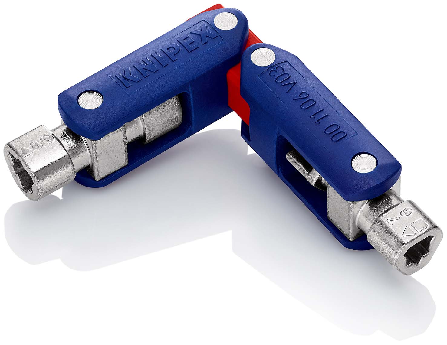 Schakelkastsleutel DoubleJoint voor sluitsystemen in de elektrotechniek, gas- en waterverzorging, airco- en ventilatie-installaties, industrie, gebouwentechniek, etc Met bitaansluiting voor 1/4'' bits met magneet. Vier verschillende sluitingen uit gegoten zinkmassa in een sleutel. Totale armlengte: 97 mm. zelfbedieningskaart/blister. - Capaciteit vierkant: 5,0 — 8,0 mm - Capaciteit dubbele baard: 3 – 5 mm - Capaciteit driekant: 7,0 — 9,0 mm.