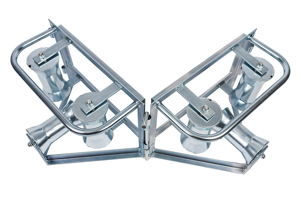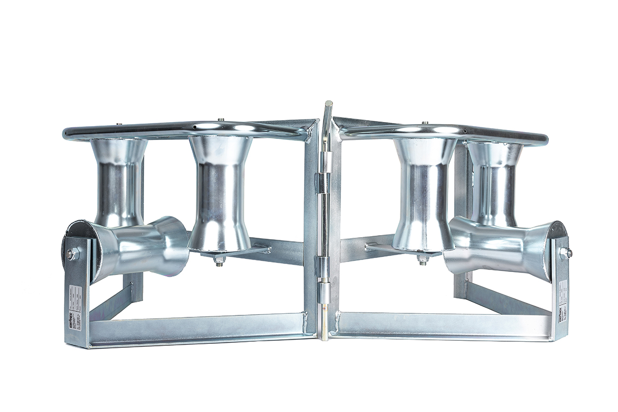 Vermindert wrijving bij richtingsveranderingen voor max. kabel Ø140 mm. Stalen rollen in gegalvaniseerde stalen structuur. Plug-in systeem met bevestigingspijler maakt koppeling van twee of meer hoekrollers mogelijk voor optimale kabelroutering.