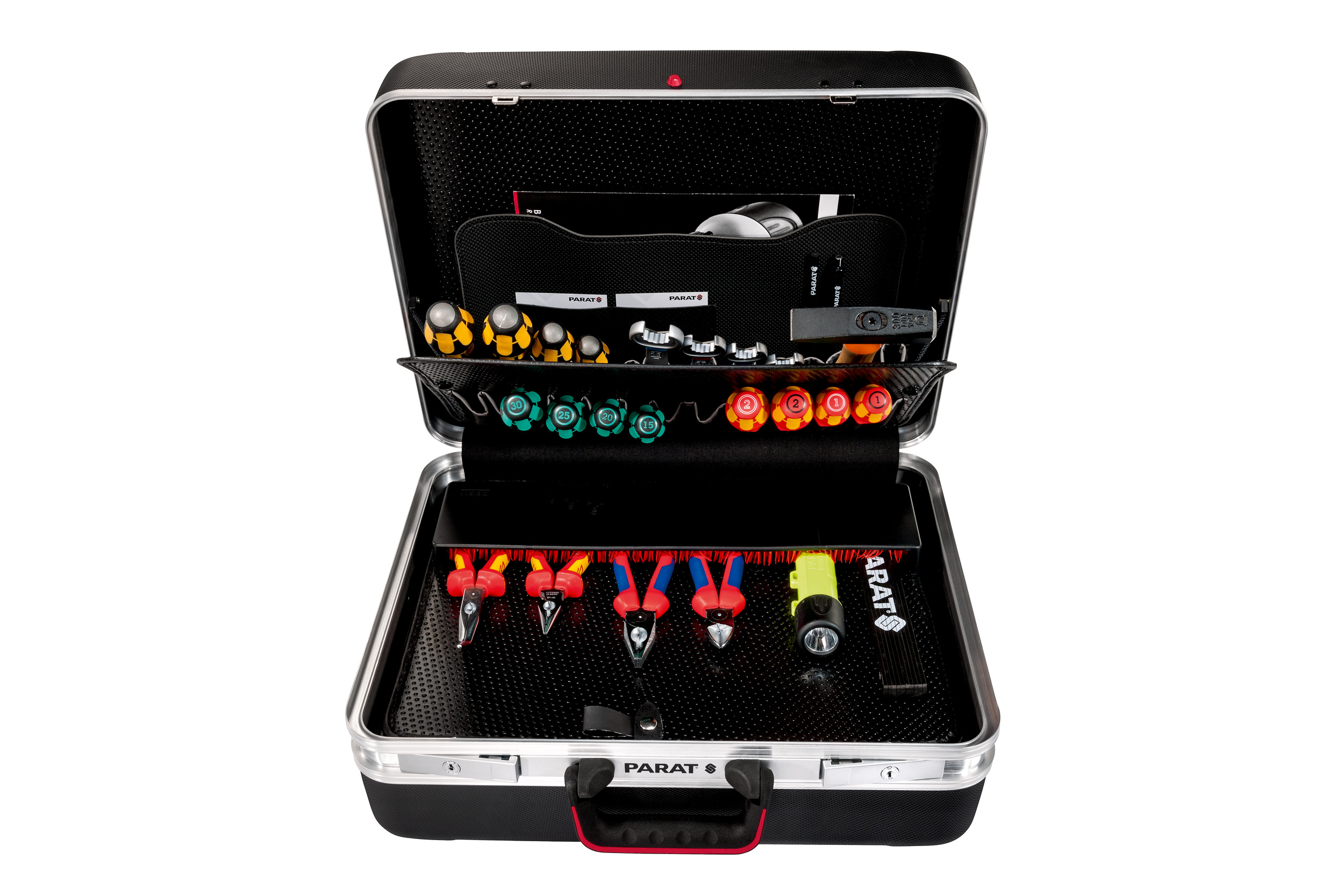 De literimited Edition is gebaseerd op de klassieke Top Seller Classic gereedschap koffer van PARAT. Met een innovatief, slijtvast en antislip X-ABS-plastic oppervlak biedt deze editie een goed doordacht interieur. Het bevat gepatenteerde houdersystemen zoals de CP-7, afwasbare gereedschapsborden van Con-Pearl®-materiaal en een extra hoge basisschaal. Het dubbele Aluminium frame versterkt het behuizing en maakt het veerkrachtig tot ongeveer 30 kg. De kantelcilindersloten beschermen de inhoud tegen diefstal, terwijl de ergonomisch gevormde handgreep maximaal transportcomfort biedt.