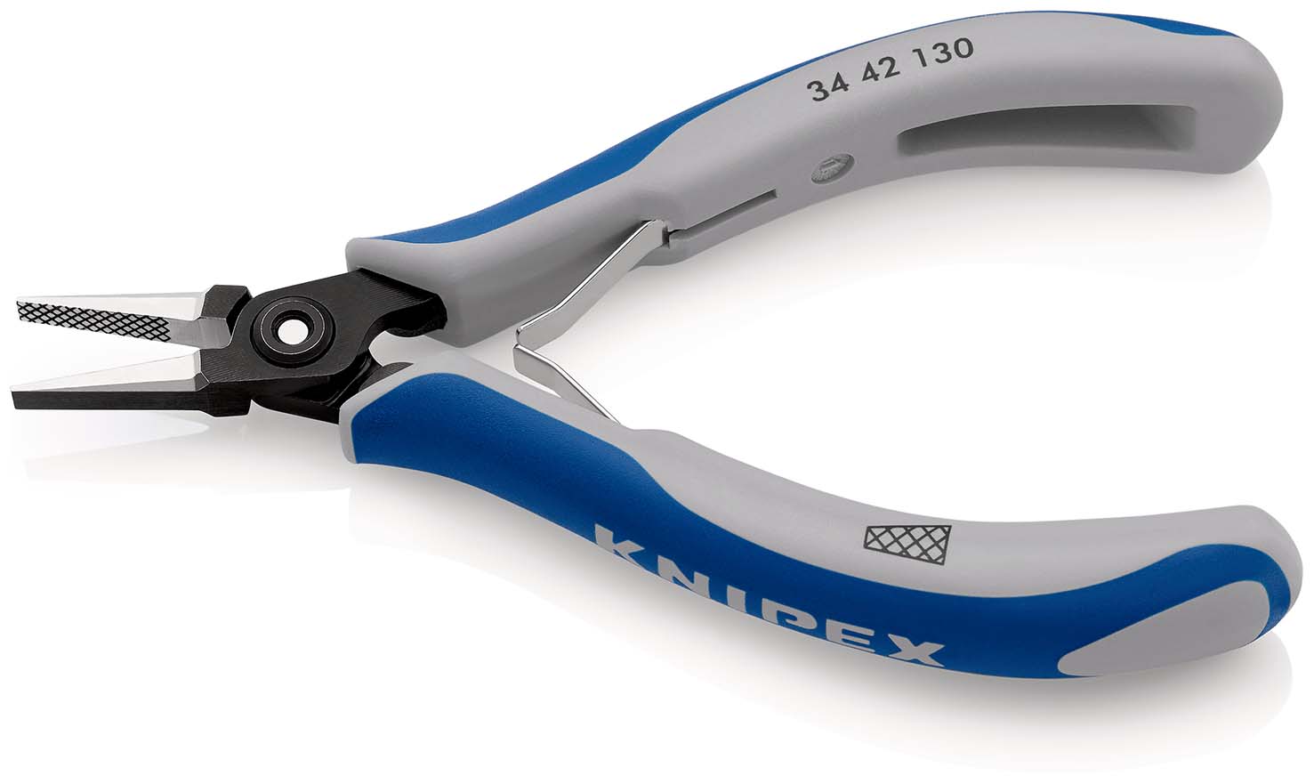 Precisie elektronicatang precisietangen voor fijne montagewerkzaamheden bijv. in elektronica en fijne mechanica. voor grijpen, klemmen en buigen. Precies, soepel lopend geschroefd scharnier. Precies vervaardigde scharniervlakken voor een gelijkmatige, wrijvingsarme beweging in het hele openingsbereik. Soepele, dubbele veer, waardoor de tang makkelijk en gelijkmatig opent. Kanten zorgvuldig ontbraamd. Perfecte finish. voor zeer fine montagewerkzaamheden, bijv. in elektronica en fijne mechanica. Ca. 20% minder gewicht dan gewone elektronische tangen. Soepele dubbele veer waardoor de tang makkelijk en gelijkmatig opent. platte, brede bekken. met precisielaser behandeld raster. - Beklengte (B): 21,9 mm - Bekdikte (scharnier) (D): 6,5 mm - Puntbreedte (E): 1,4 mm - Tip Thickness (F): 3,5 mm - Kopbreedte (A): 11,2 mm.