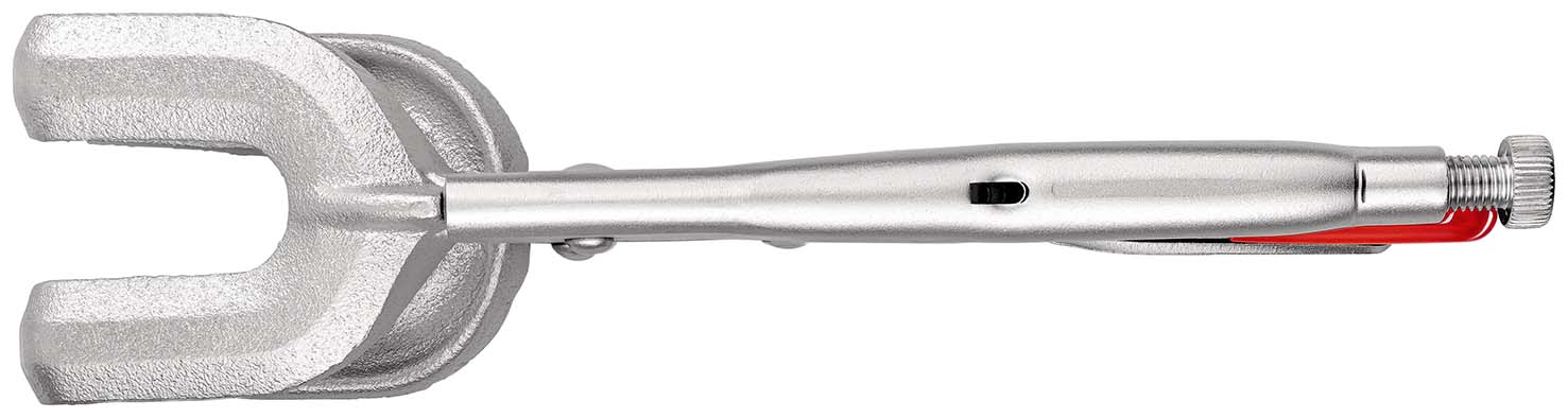 Las-klemtang voor het klemmen, vastspannen en vasthouden van verschillende profielen. Zeer belastbaar. Met stelschroef en ontgrendelingshendel. éénhandbediening. Grote spankracht door kniehefboomoverbrenging. grijpbekken uit hittebestendig gietijzer. klemt naast elkaar liggend profiel- en vlak materiaal tijdens het lassen. ook voor profielen met randen tot 25 mm hoogte. - Spanwijdte rond: 30 – 65 mm - Spanwijdte 4-kant: 50 mm.