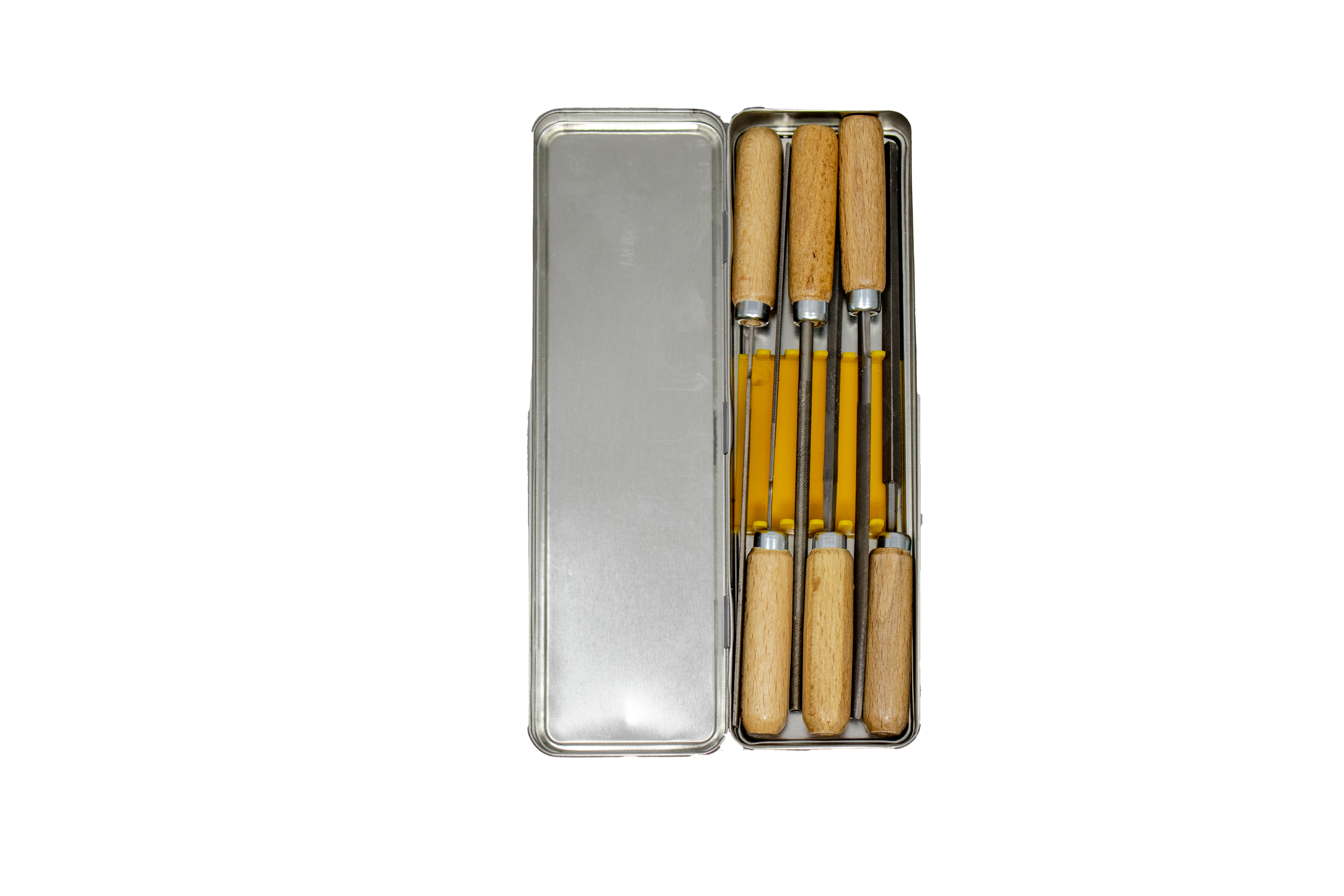 De DAVID sleutelvijlen set is een complete 6-delige set van hoogwaardige vijlen, verpakt in een stevig blik. Met houten hechten voor een comfortabele grip zijn deze vijlen ideaal voor licht en nauwkeurig vijlwerk. De set bevat diverse vormen, zodat u voor elke klus de juiste vijl bij de hand heeft. Perfect voor het fijn bewerken van metaal, hout en andere materialen.