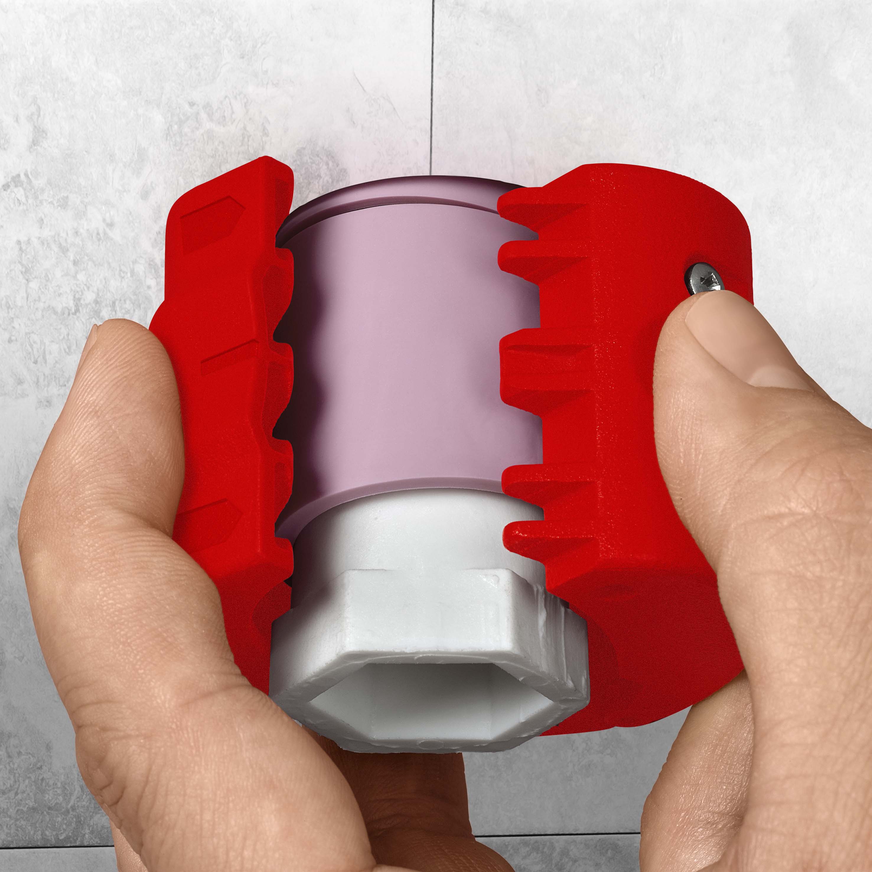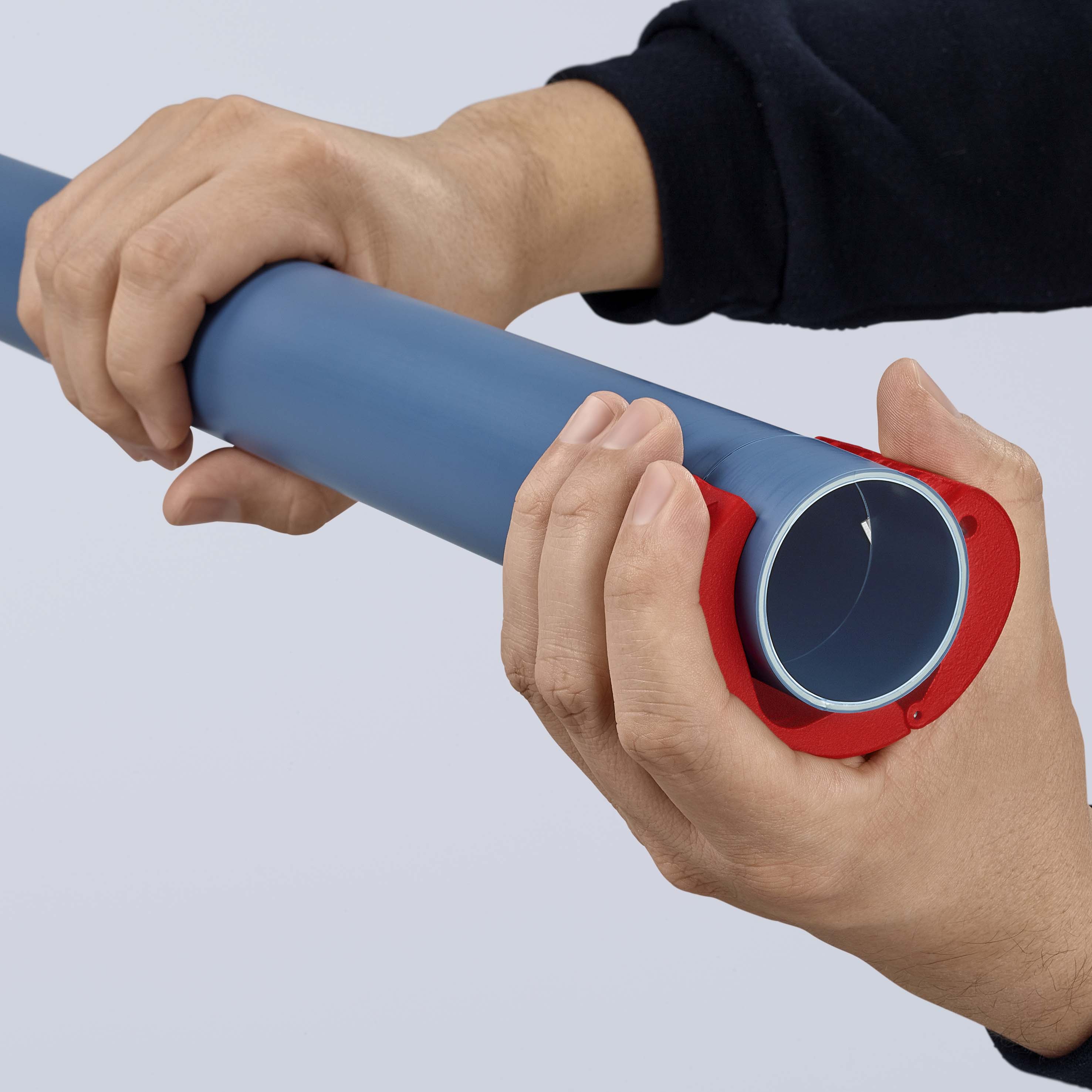 KNIPEX BiX® Bijzonder slimme pijpsnijder: Snijdt buizen spaanloos af en past in de vuist. Snijdt onder andere afvoerbuizen voor hoge temperatuur en elektriciteitsbuizen in een handomdraai. Kort druppel- en afdichtmanchetten af tijdens de eindmontage-volgens de norm dicht bij de muur. Snijdt niet-versterkte kunststof buizen van Ø 20 tot 50 mm met een wanddikte tot 2,4 mm. Snijdt zachte kunststof buizen en buizen met geschuimde kern van Ø 20 tot 50 mm met een wanddikte tot 3,5 mm. Snijdt druppel- en afdichtingsmanchetten af met ong. 2-3 mm wandafstand. Kort buizen netjes en spaanloos af in enkele slagen. Draaibaar messenblok voor het snijden van kunststof buizen (mes in het midden) of druppel- en afdichtingsmanchetten (mes Buiten). Met vergrendelingsmechanisme voor veilig transport. Twee reservemesjes geïntegreerd in het gereedschap. - Snijwaarden HT- en kunststof buizen Ø mm: Ø 20 – 50 mm - Snijwaarden afdichtingsmanchetten Ø mm: Ø 20 – 50 mm.