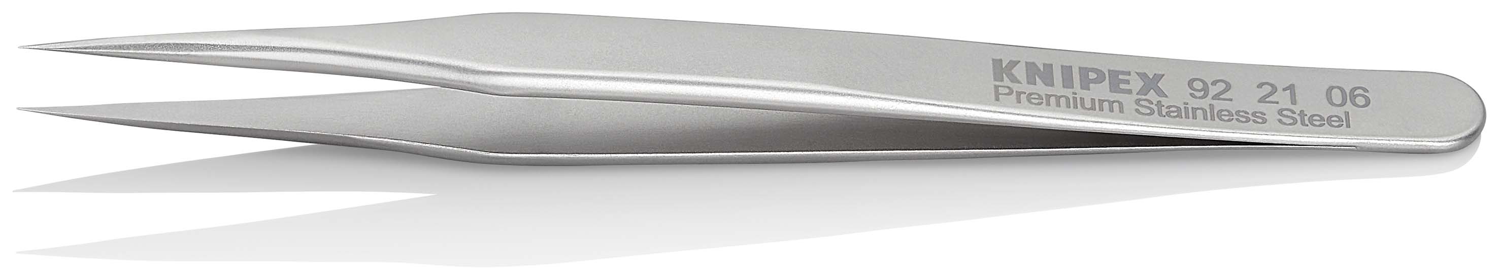 Mini-precisie-pincet voor bijzonder veeleisend, fijn werk: zeer corrosiebestendig en duurzaam. Handgemaakt: met gepolijste randen en een uitstekend mat, krasvrij en spiegelvrij oppervlak. voor de elektronicabranche, horlocomforters, juweliers en laboratoria voor biologische en medische toepassingen in matig agressieve chemische omgevingen. Hoogwaardig premium roestvrij staal: hoge temperatuurbestendigheid en uitstekende corrosiebestendigheid tegen de meeste chemicaliën, zouten en zuren Ideaal voor werken in kleine ruimtes, onder de microscoop en voor precisiewerk op korte afstand. Uitermate geschikt voor het hanteren van monsters, microscopievoorbereiding, sortering, precisieproductie, elektronische assemblage, nabewerking en reparatie. - Oppervlak: gematteerd - uitvoering: rechte - Puntbreedte (A): 0,08 mm - Puntbreedte (B): 0,13 mm - uitvoering pincetpunt: naaldspits - Corrosiebestendig: ja - ESD-getest: nee - VDE-gekeurd: nee - Branches: Industrie Elektronika - Magnetisch: niet-magnetiseerbaar (80%).