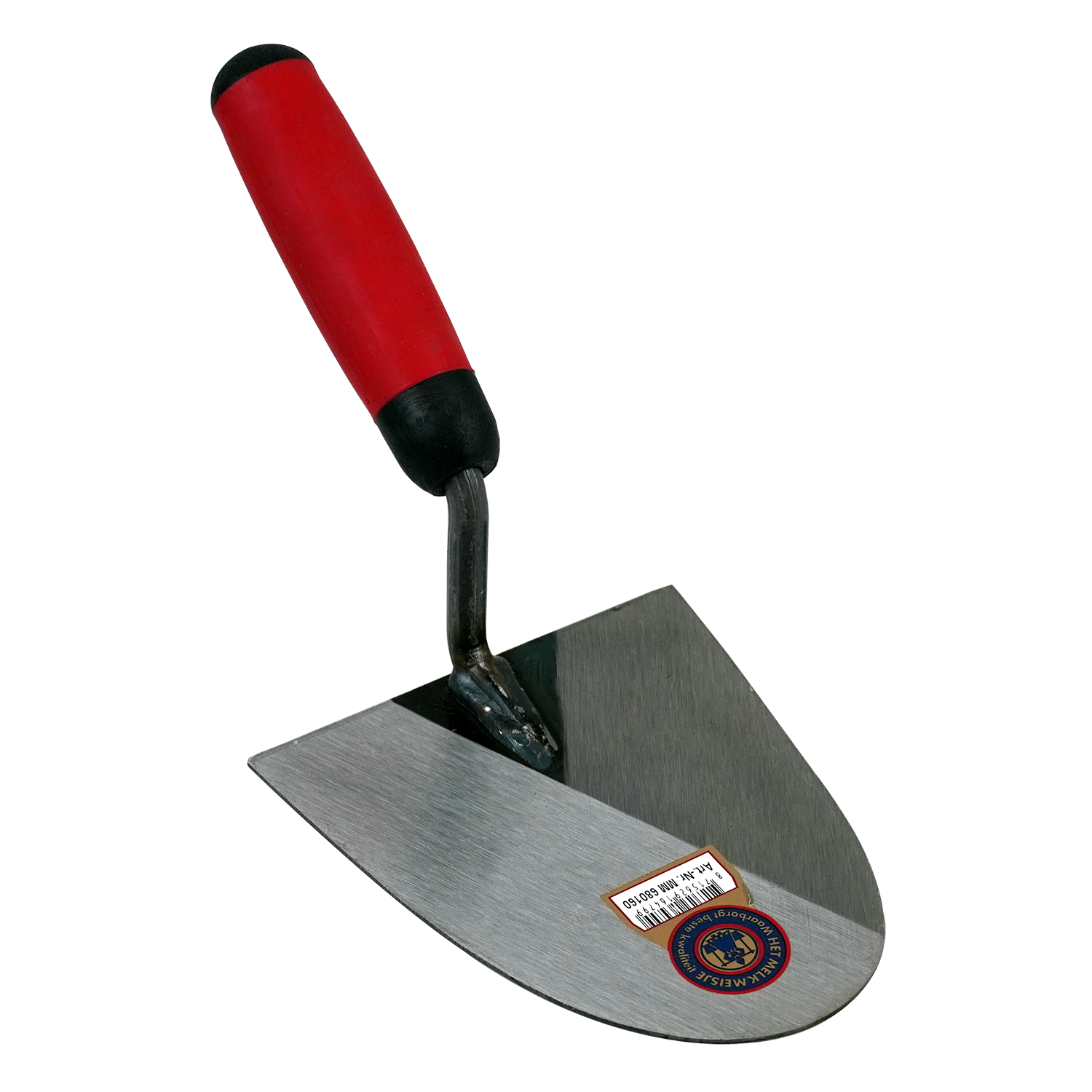 Melkmeisje metseltroffel Arnhems model met een blank geslepen blad en rode zachte greep.