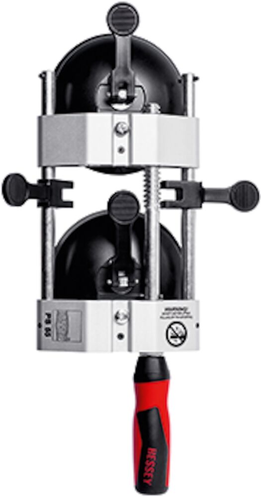 BESSEY platenklemmen een optimale oplossing voor het fixeren en positioneren van onderdelen met een groot oppervlak, ook zware onderdelen, met een glad oppervlak. Hierbij omvat de bandbreedte van de materialen omvat keramiek, graniet, Corian®, kunststoffen, plaatwerk, glas en zelfs kunststeen. De platenklemmen werken via vacuümzuigers, die met elkaar verbonden zijn door middel van een spil en twee geleidingsstangen. Met twee hendels, die schuifbaar op de geleidingsstangen zijn aangebracht, kunnen hoogteverschillen bij de stootvoeg van de panelen worden gecompenseerd. Op deze manier kunnen in alle hoekbereiken perfecte verbindingen worden gemaakt en is de montage van keukenwerkbladen en aanrechtbladen, evenals de bekleding en panelen veel eenvoudiger en sneller.
